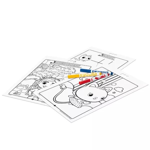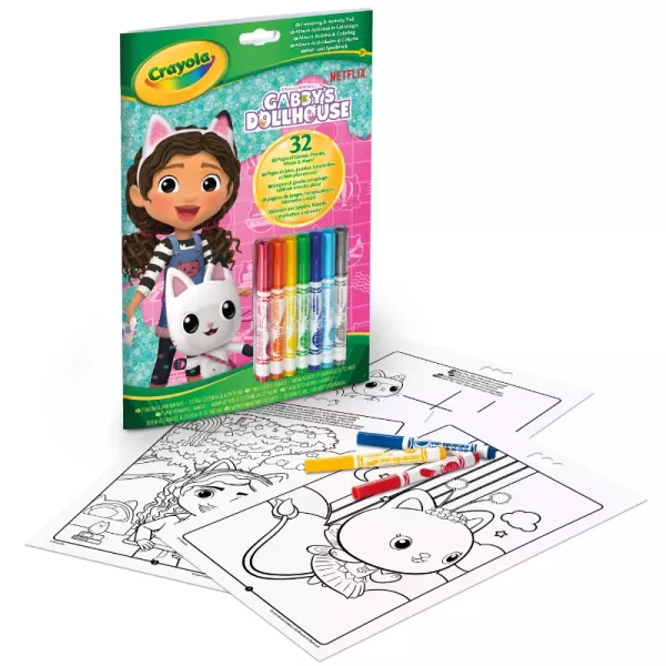 Crayola's Kleur- & Activiteitenboekje zit vol met kleurplaten rondom het poppenhuis van Gabi. Het boekje bevat 32 grappige kleurpagina’s die kinderen naar eigen inzicht kunnen inkleuren. Het activiteitenboekje bevat ook 7 mini Crayola-stiften in verschillende kleuren, dus als je per ongeluk een paar vergeet mee te nemen van huis, heb je alles wat je nodig hebt om te kleuren. Crayola-stiften slijten niet, verkruimelen niet en drogen niet uit, zodat kinderen ze lang kunnen gebruiken.