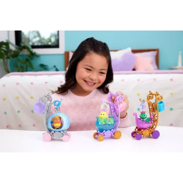In het rijk van de verbeelding van kinderen kan alles gebeuren. Hier hoeven niet alleen prinsessen, maar zelfs hun favoriete dierenvrienden niet te lopen. De Disney Prinsessen dierenkoetsen met hun schattige en charmante details voeren kinderen mee in de wereld van sprookjes en terug. De set bevat een dierenvriend, een zacht dekentje en vier fantastische accessoires voor geweldige avonturen. De wielen van de koets draaien, zodat het bedenken van sprookjesachtige verhalen echt soepel kan verlopen. Met meerdere sets kunnen kinderen nog kleurrijkere verhalen verzinnen, zoals een sprookjesachtige prinsessenparade. De sets zijn afzonderlijk verkrijgbaar en de beschikbaarheid kan variëren. Kleuren en versieringen kunnen verschillen. Kenmerken van het product: