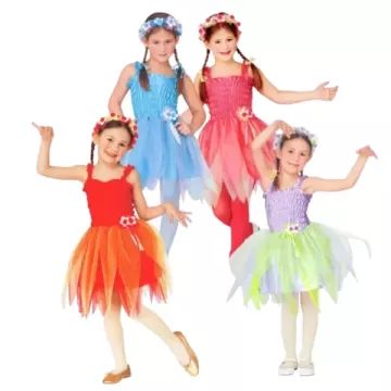 Fee ballerina kostuum met bloemige hoofdband - 110 cm, verschillende soorten